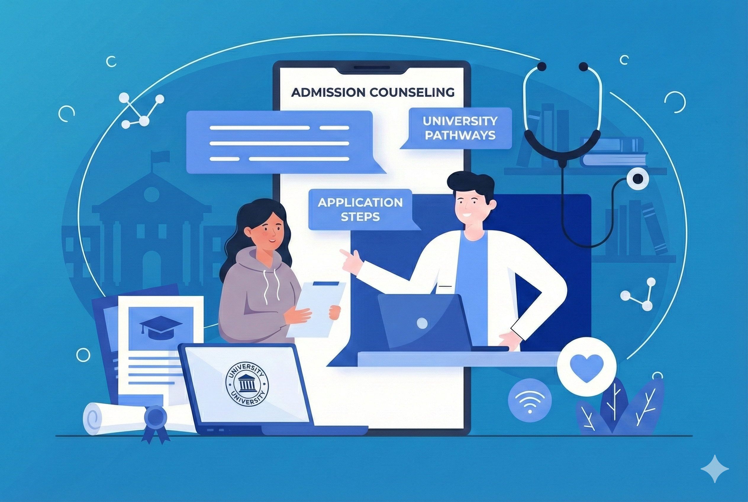 Medical career counselling for students exploring MBBS alternatives, postgraduate pathways, and long-term clinical career planning.